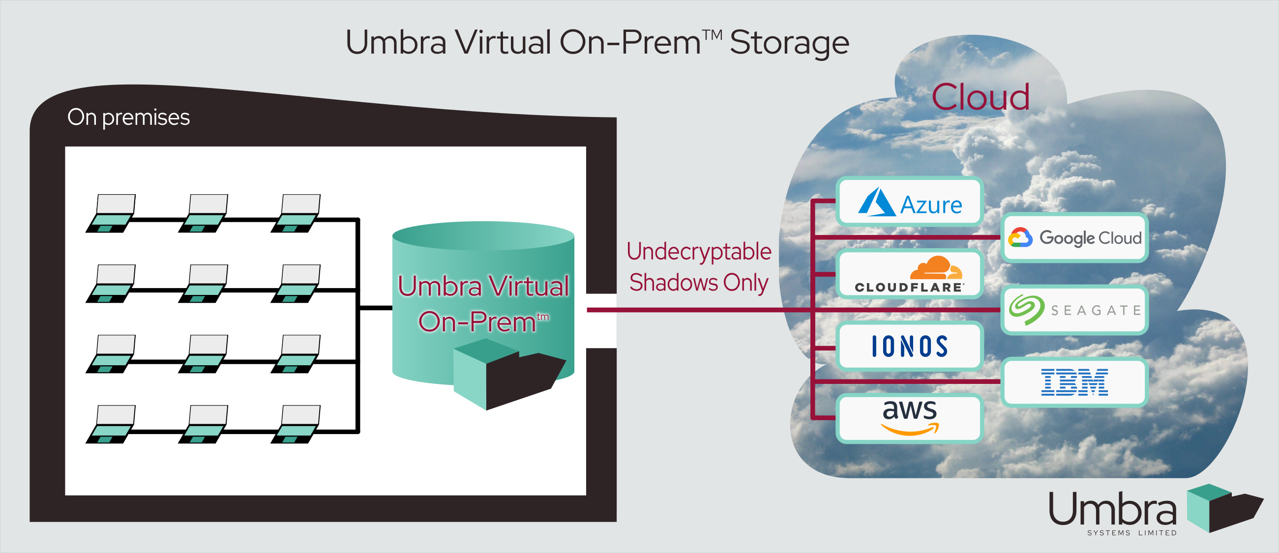 Umbra Virtual-on-prem appears like local network storage, but silently stores data across 7 cloud providers as immutable, undecryptable shadows.
